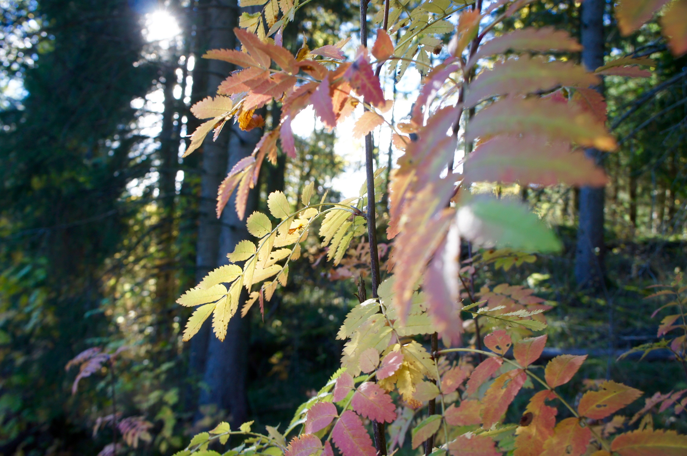 Lökigt? Säkert. Men det är som det är. Jag mår bra av att gå omkring på annat än trottoarer emellanåt. På asfalt finns inga dofter av fuktig mossa, löv och granbarr. Där finns inget rogivande sus i grenarna som låter som om universum herself drog lugna andetag. Där finns inga myrstackar, fantastiska färgskiftningar i löven eller porlande små vattendrag. Så för att jag inte ska gå igenom livet utan att se hela paletten så måste asfalten kompletteras med skogsstigar emellanåt. Så jag inte lever mitt liv i enbart gråskala tänker jag, för det vore ju lite trist.